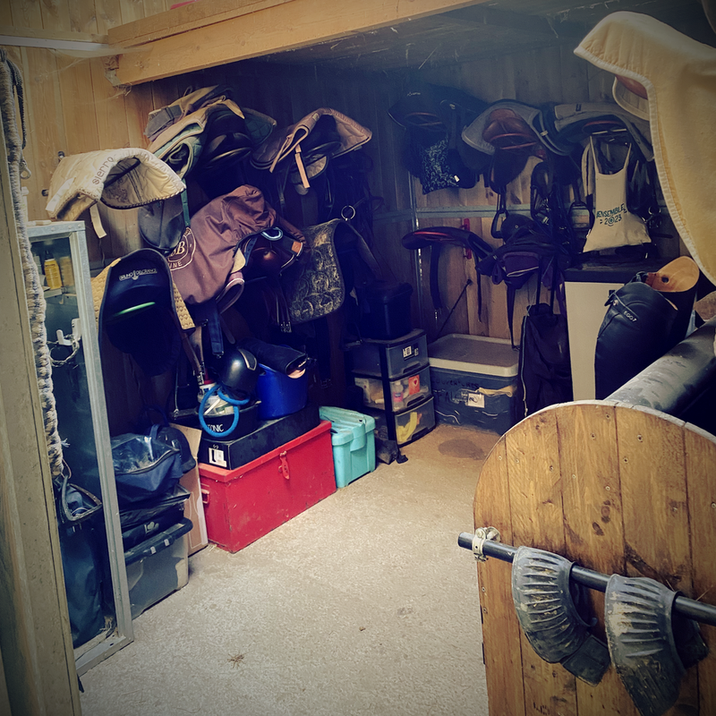 Deux selleries sont à votre disposition pour entreposer vos affaires en toute sécurité. Elles sont équipées de porte selles et de porte filets, offrant un rangement pratique pour vos selles, filets et autres équipements.