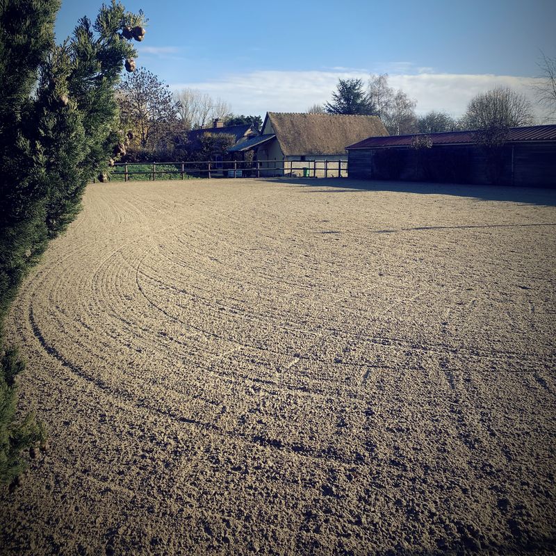 Notre carrière de 45 x 22 m vous permet de travailler aussi bien monté ou pour le travail en mains. Dotée d’un sol en sable, elle garantit un confort optimal et une sécurité maximale pour vos chevaux.